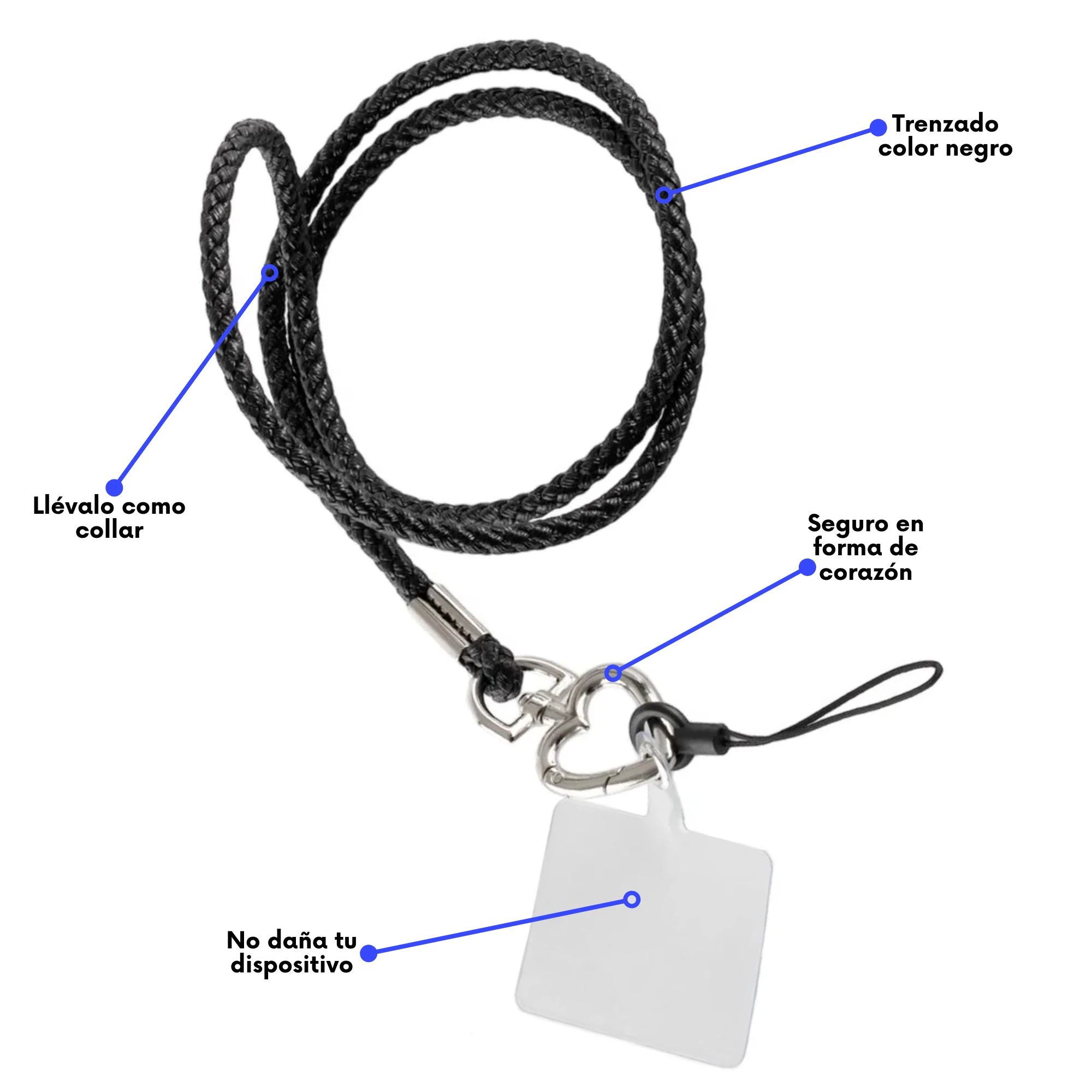- Lleva tu celular con mayor seguridad al ponerte el colgante como un collar gracias a su largo