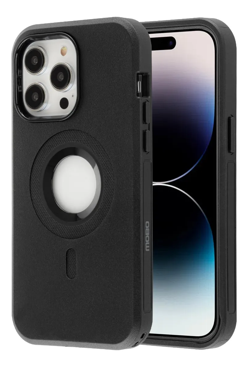 Este protector MagSafe Mobo Toro en negro proporciona una excelente protección para tu iPhone 14 Pro Max, ideal para evitar daños por caídas.