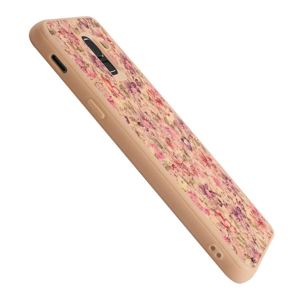 Hecho de PC tipo madera con detalles vintage de flores y un suave contorno de TPU.